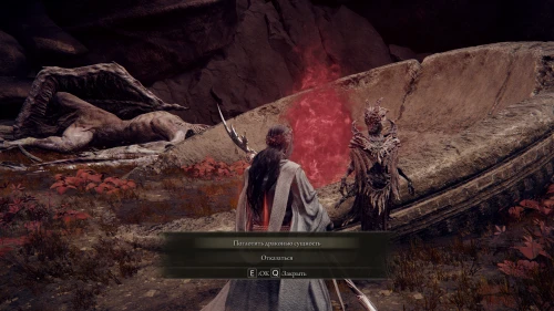 Далее поговорите со Жрицей и чтобы начать ее квест, выберите «Поглотить драконью сущность». Жрица наградит вас «Благословением древнего дракона», которое вы можете использовать лишь один раз. После его использования можно прийти к Жрице и еще раз получить его. Благословение дает временную сопротивляемость к любому урону.