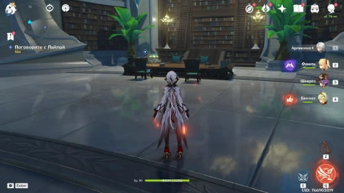 После беседы с ней пройдите в библиотеку Дом Даэны, вход в которую расположен впереди. Войдя внутрь помещения, продолжайте бежать вперед, следуя за квестовым маркером. Затем спуститесь вниз и подойдите к книжной полке. Вы заметите Лайлу за одним из столов – приблизьтесь к ней. Она посоветует вам поговорить с Кавехом.