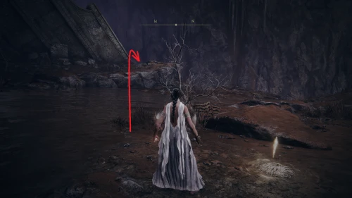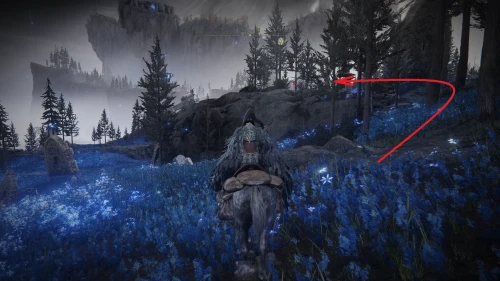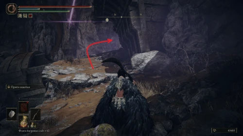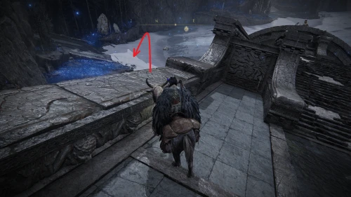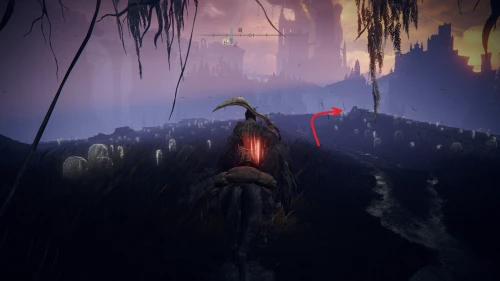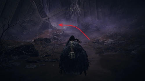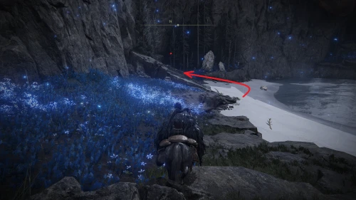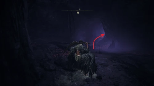 Достигните точки благодати «Лазурное побережье» и следуйте на юг, минуя Дракона Смерти. Дойдя до обрыва, поверните направо и следуйте по дороге со светящимися червями, пока не увидите великана. Идите вперед, держась правой стороны, пока не заметите огромный разлом.
