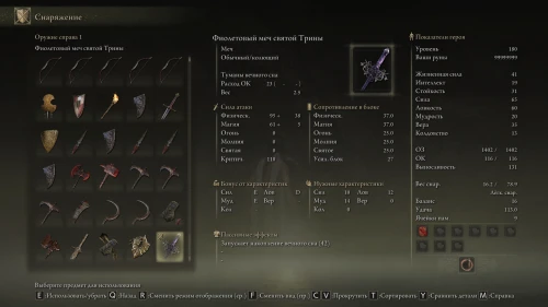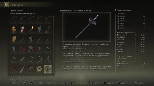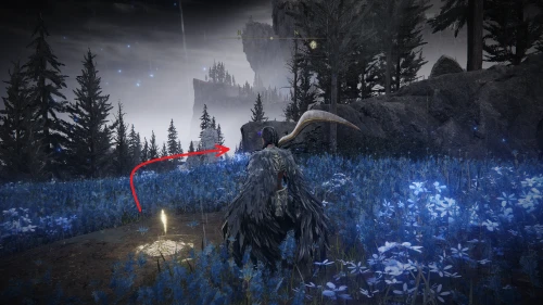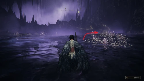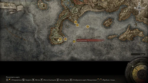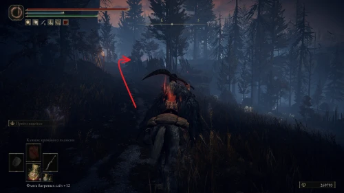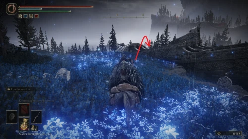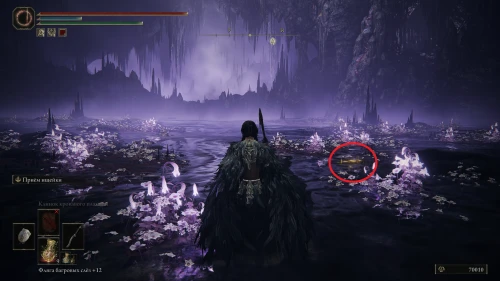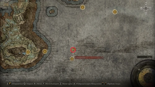 Двигаясь на северо-восток вы найдете следующую точку «Крест в разломе». Недалеко от этого места можно найти новый предмет — Фиолетовый меч святой Трины, имеющий особый навык «Туманы вечного сна», накладывающий на врагов вечный сон.
