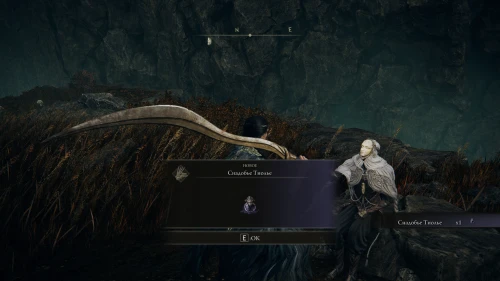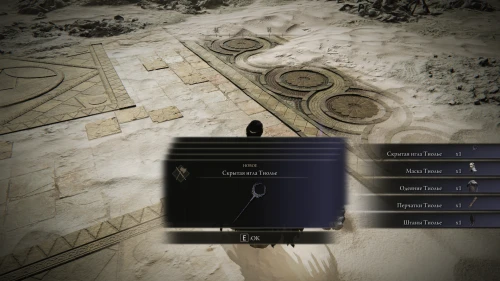 Если после боя вы не можете найти Тиолье на арене, скоротайте время у благодати и найдете его лежащего мертвым. Можно забрать с него следующие предметы: Скрытую иглу Тиолье, а также его маску, одеяние, перчатки и штаны.