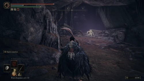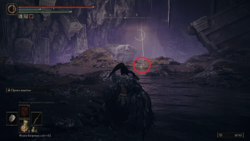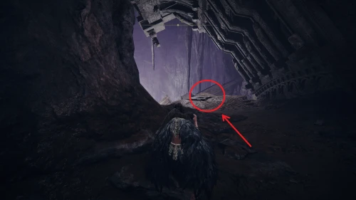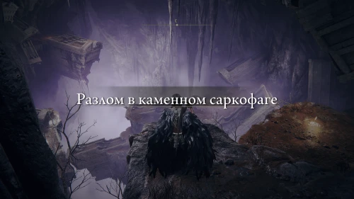 Спуститесь по скалам вглубь разлома, достигнув точки «Разлом». Идите вперед в пещеру, выйдете в огромное подземелье и найдите новую точку сохранения «Разлом в каменном саркофаге».