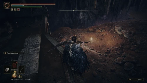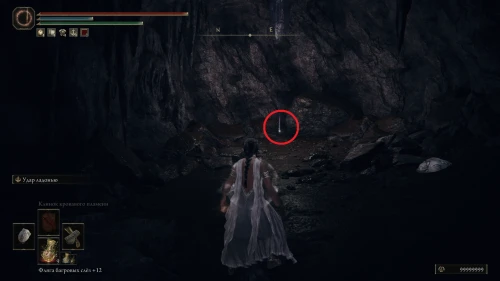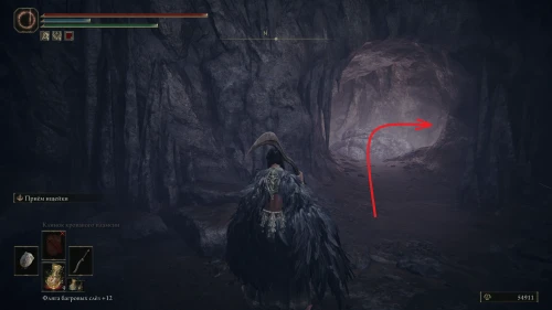Чтобы получить меч, от данной точки сохранения сверните налево и аккуратно спрыгните вниз по каменному мосту. Перед вами окажется пещера, в глубине которой и находится данное оружие.