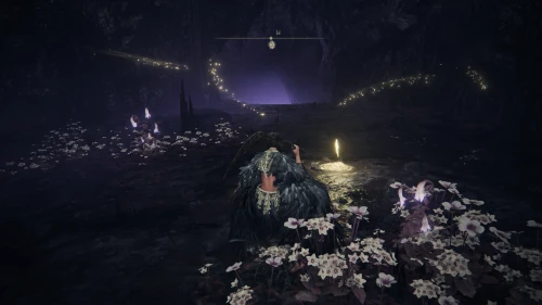 После уничтожения рыцаря откроется телепорт «Фиолетовый сад». Пройдите дальше в небольшую пещеру, и вы увидите святую Трину. Если вы не найдете там Тиолье, скоротайте время у благодати и возвращайтесь обратно. Тиолье будет лежать недалеко от нее, погруженный в сон.