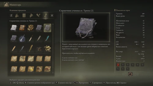 Последний справочник можно найти при первом посещении святой Трины в фиолетовом саду. Он находится в пещере, справа от самой Трины. Этот справочник позволит изготовить Усыпляющую ветвь.