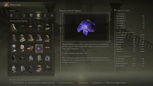 Вернитесь в Фиолетовый сад к святой Трине, которую вы также найдете мертвой. Заберите Цветок святой Трины, слегка повышающий максимум ОК. На этом квест святой Трины и Тиолье завершится.