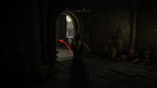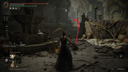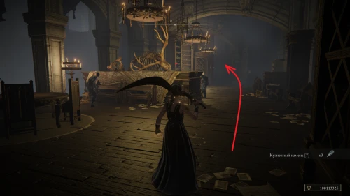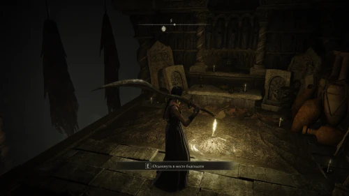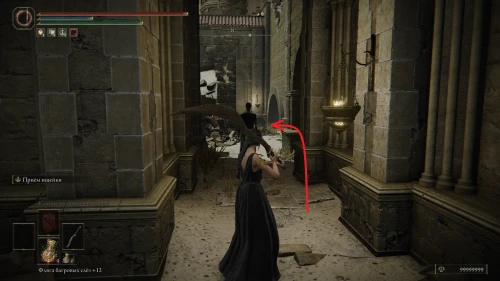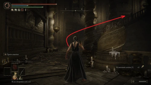 Оттуда поверните направо на юго-восток и выйдете на небольшую площадь с фонтаном. Здесь сверните на следующий переулок, идите до конца, и вскоре вы увидите слева дверную арку. Войдите в помещение и поднимитесь наверх, пока не достигните ближайшей точки к Старухе-роговест — «Малый частный алтарь».