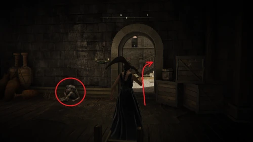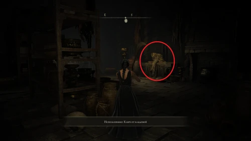 Сверните направо и зайдите в помещение. Поднимитесь по лестнице и на трупе у выхода вы сможете забрать ключ от кладовой, в которой находится Старуха-роговест.