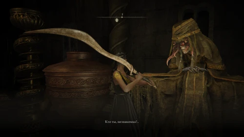 Вернитесь к запертой двери, откройте ее и справа вы увидите Старуху. При первом разговоре, она примет вашего персонажа за приспешника Месмера Колосажателя, осыплет проклятиями и откажется разговаривать.