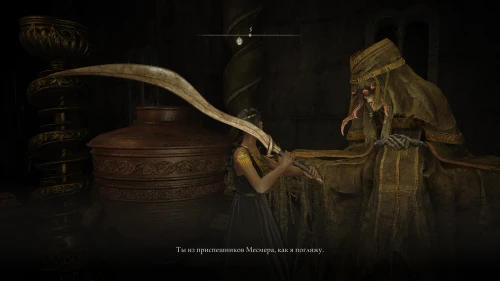 Мессмер будет находиться на самом верху, за дверью у благодати «Вход в темные покои». Перед входом на место боя с Мессмером вы увидите два знака призыва, чтобы призвать Роговеста и Мечницу Иолану.