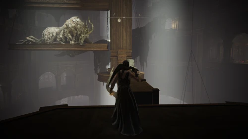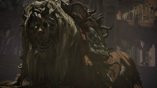 Как только ваш персонаж откроет двери на арену, вы увидите лежащего вдалеке Священного танцующего льва, который начнет оживать под молитвы Старухи-роговест.
