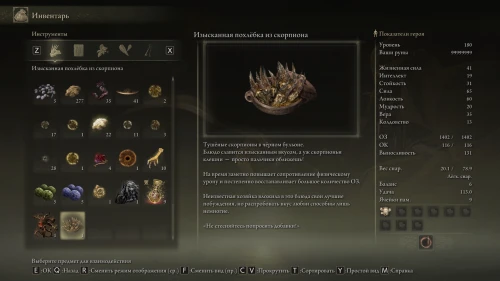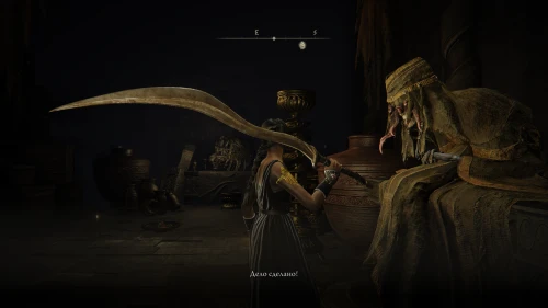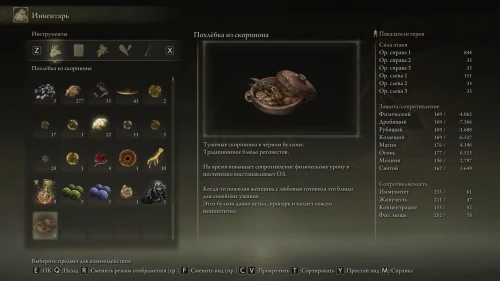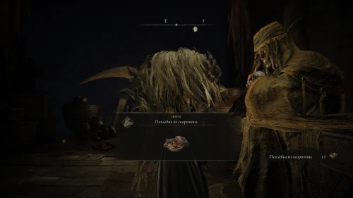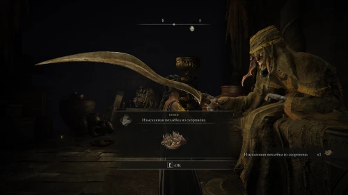 Также она сообщит что приготовила праздничное блюдо и пригласит вас разделить с ней трапезу. На этот раз в вашем инвентаре появится Изысканная похлебка из скорпиона, заметно повышающая сопротивление к физическому урону и постепенно восстанавливающая ОЗ.