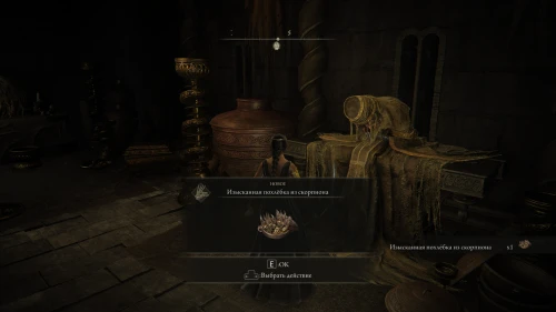 В дальнейших разговорах старуха будет говорить только о том, что хочет отдохнуть. Скоротав достаточно времени у благодати, вы можете вернуться и увидеть спящую беспробудным сном старуху, а перед ней вы увидите и сможете забрать еще одну Изысканную похлебку из скорпиона.