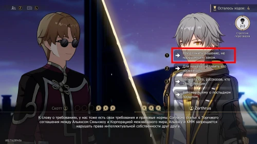 Для выигрыша в споре ваш уровень энтузиазма должен быть выше, чем у соперника. Можно также попробовать опустить этот параметр у собеседника до 0 – тогда вы автоматически победите. Для этого необходимо выбирать правильные ответы за ограниченное количество ходов. Отметим, что вы также можете использовать стратегии для применения разных техник переговоров и повышения своего энтузиазма.