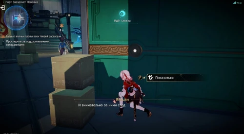 Далее спуститесь еще ниже и подойдите к ящику, на который указывает маркер. Яньцин захочет проследить за ними. Вам нужно будет начать следовать за мужчиной в синем наряде, прячась за коробками, когда он останавливается и смотрит назад. Впрочем, скрываться за каждым ящиком необязательно. Плюс, у вас всегда будет время на то, чтобы спрятаться за укрытием.