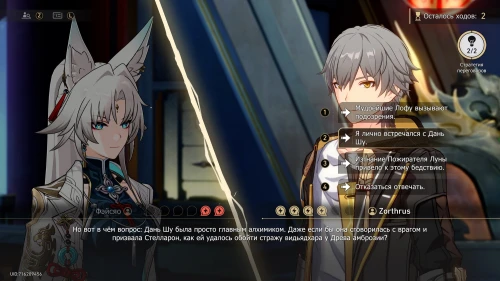 Управление от Март 7 снова перейдет к Первопроходцу. Вы окажитесь в Обители божественного предвидения. Бегите вперед и вступите в диалог с генералами, включая Фэйсяо. Поболтайте с ней немного. После этого начнутся переговоры. Как и при споре со Скоттом вам будут доступны стратегии переговоров, позволяющие удвоить очки энтузиазма, пропустить раунд или вернуться к прошлому вопросу.