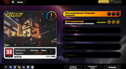 Возвратитесь в видеопрокат, а затем взаимодействуйте с системой HDD и найдите соответствующее задание в «Основной линии». Игра посоветует вам взять эфирных и электрических персонажей не ниже 33-го уровня. В качестве пробной героини будет выдана Чжу Юань – она является основным дамагером, поэтому в команду с ней желательно взять саб-ДД и саппортов от 30-го левела и выше.