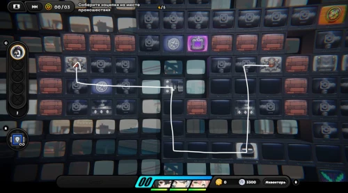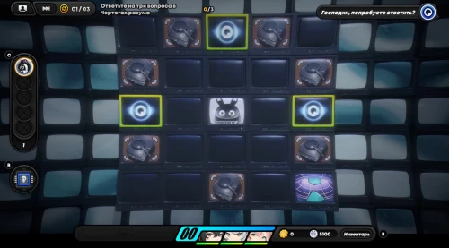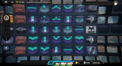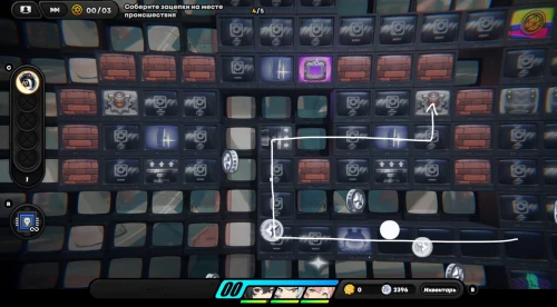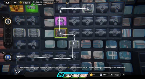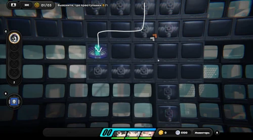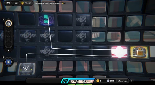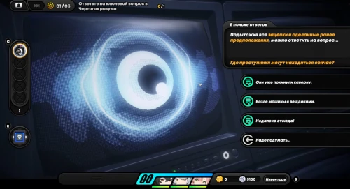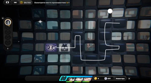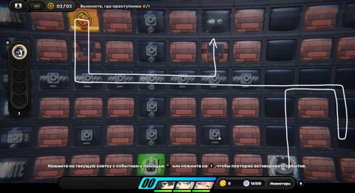 Появившись на игровом поле, начните двигаться вниз, собирая по краям монетки. Затем встаньте на зону наблюдения для разблокировки новой области слева. Соберите первую зацепку с левой стороны. Вы получите плагин психорезонанса, использование которого (клавиша «R») позволит вам перенестись в особую локацию, где происходит формирование вопросов при сборе достаточного количества улик.