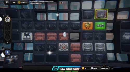 Пройдите налево и вниз, чтобы встать на очередную клетку с часами и начать эксперимент. Вы увидите, куда спрятались преступники, и где находятся материалы. Слева находится трещина, за которой спрятан 3-й пакет данных, а справа – трещина, за которой расположена монетка. В середине же спрятались бандиты.