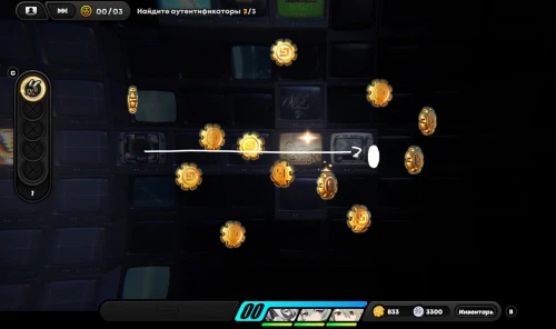 Чтобы попасть в следующую зону, вам необходимо будет открыть дверь, а для этого потребуются 3 устройства идентификации. Пройдите дальше наверх и встаньте на лампочку, чтобы осветить область вокруг себя. Подберите 1-й аутентификатор слева и продолжите двигаться влево, собирая по пути монетки и чемоданы с денни.