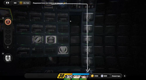 Далее двигайтесь влево и наверх. Откройте ключиком дверь справа и заберите еще один золотой кейс. Затем пройдите вправо, возьмите 2-й пакет данных наблюдения и изучите газетный выпуск. После этого можете открыть дверь сверху вторым ключом и прыгнуть в воронку. Запустите лифт для начала боевого испытания, где вам предстоит победить группу рядовых мобов и одного Танатоса. Будьте осторожны, так как данный враг способен исчезать, а потом атаковать из-под невидимости.