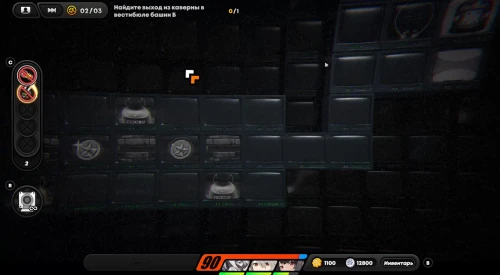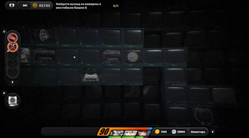 Оказавшись на игровом поле, начните двигаться вправо к синей преграде. Затем активируйте инфракрасную камеру (клавиша «R»), пройдите направо, уничтожьте всех призраков и встаньте на клетку с бесплотным другом, чтобы он открыл вам дверь. Теперь пройдите наверх и вправо к лампе, включив ее.