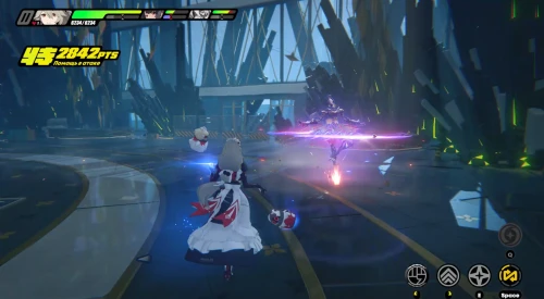 Добавим, что иногда балерины будут объединяться в танце, чтобы запускать в вас фиолетовые снаряды. Рекомендуем в этот момент переключиться на персонажа с холодным оружием (например, Эллен) и перейти на спринт для отбивания всех лезвий. После этого приема боссы обычно начинают выполнять рывки по всей арене – их движения демонстрируются в виде фиолетовых прямоугольников на полу. Проще всего уклоняться от этих атак подвижными героями (опять же подойдет Эллен).