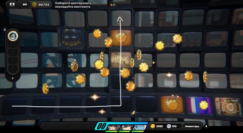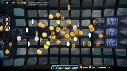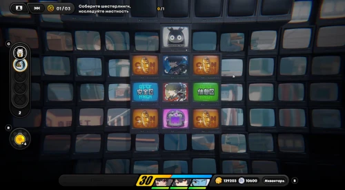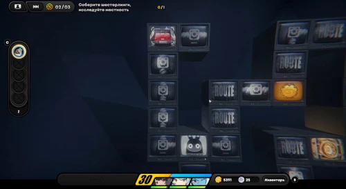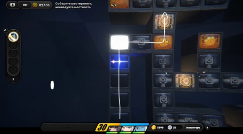 Пройдите вправо, соберите все шестеренки и купите кота удачи за 5000 шестерлингов. Затем разблокируйте синюю преграду перед кристаллом (если у вас мало денег на счету), однако пока что не пользуйтесь удвоением шестерней – лучше дождитесь момента, когда накопите побольше денежек.