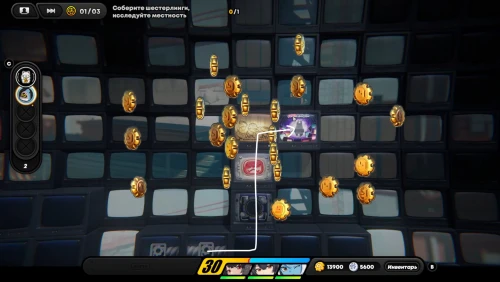 Спуститесь вниз в центр и теперь откройте нижнюю дверь, потратив 10000 шестерлингов. Внизу вам нужно будет поймать двух золотых банбу, которые превращают все шестеренки, на которые становятся, в затворы, поэтому схватить их нужно как можно быстрее. Старайтесь при этом не становиться на клетки с воротами.