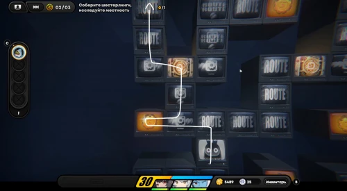 Вернувшись назад, пройдите вправо и подберите 2-й пакет данных наблюдения. Что касается лабиринта, то вы вполне можете попробовать открыть все затворы, чтобы собрать все шестерлинги (вы останетесь в небольшом плюсе), спасти всех рабочих в испытаниях и купить второго кота (его расположение показано на картинке ниже).