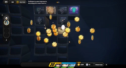 Далее пройдите влево и вниз, убрав 1-2 затвора на своем пути, чтобы дойти до прохода к золотому чемоданчику. Для удаления преграды придется снова потратить половину имеющихся у вас шестерлингов (при возможности снизьте сумму, открыв затворы, за которыми виднеются шестеренки).