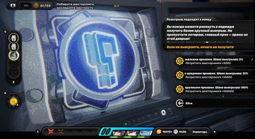 Пройдите дальше направо, и наверху вы увидите 3-й пакет данных наблюдения за синей преградой. Чтобы убрать ее, вам придется сыграть в лотерею, тратя шестерлинги. Мы советуем вам сразу потратить 100 тысяч шестерлингов, чтобы гарантировано убрать препятствие и забрать нужный вам предмет.