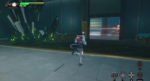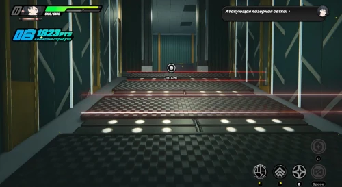 Убрав очередной барьер, идите дальше. Начните спускаться вниз, избегая лазеров, и подойдите к консоли. Доберитесь до новой обширной локации. Расправившись с рядовыми противниками, вы столкнетесь с Очумелым психом. К счастью, Джейн Доу крайне маневренный персонаж, поэтому вы сможете без проблем уклоняться почти от всех его атак, особенно в усиленном режиме. Убив его, подойдите к последней консоли, которую вы не сможете вырубить.