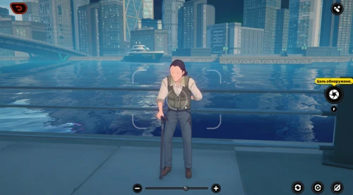 Старик поблагодарит вас, а потом попросит сделать его фото на фоне небоскребов. Пройдите позади статуи и встаньте перед Родсом. Затем возьмите в руку камеру, зажав клавишу «F» и нажав на иконку объектива. Наведите фотоаппарат на Родса и сделайте его снимок, как только увидите справа надпись «Цель обнаружена»