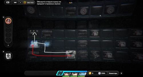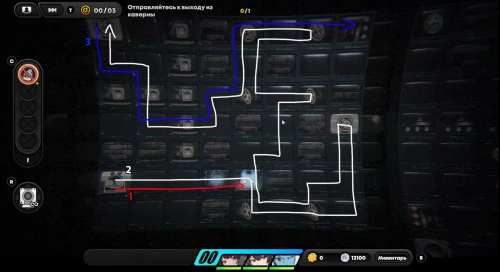Вы окажитесь в новой локации. Активируйте плагин, а затем встаньте на клетку с бестелесным другом для открытия прохода. Воспользуйтесь поршнем и перелетите в зону наверху. Снова включите инфракрасную камеру и первым делом уберите дверь, взаимодействовав с синим банбу. Вернитесь в обычный режим и пройдите по маршруту, показанному нами ниже на второй картинке, чтобы подобрать 1-й и 2-й пакеты данных наблюдения, а также 6 монеток. В конце встаньте на поршень в правом верхнем углу.