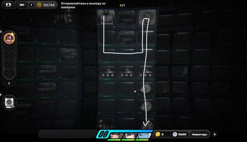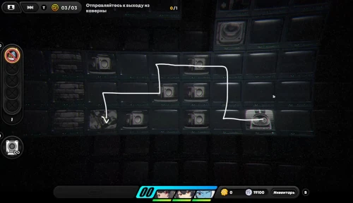 Перейдя в правую часть игрового поля, соберите 3-й пакет данных наблюдения, а потом встаньте на поршень справа для сбора всех монеток внизу. Теперь поднимитесь наверх и влево, дабы убрать кубик, снова спуститесь вниз и встаньте на клетку с флагом.