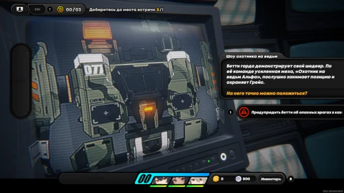 На новой части поля продолжайте идти вперед и следить, как меха уничтожает врагов. Когда Охотник попросит вас оценить его работу, можете выбрать любой вариант.