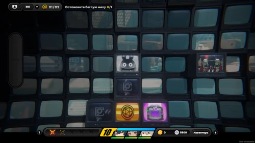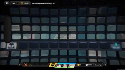 На следующем поле соберите еще один пакет данных и припасы. Идите вниз, избегая бомб: Охотник будет взрывать их, нанося урон по горизонтали и вертикали.