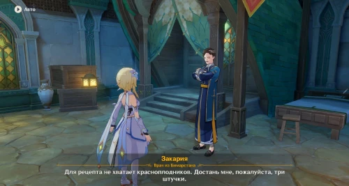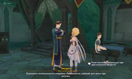 Этот квест мы получаем от Закарии, врача из Бимарстана в Сумеру, который ранее помогал Маруфу с рецептом и является его наставником. Закария обеспокоен состоянием своего коллеги, который не в первый раз экспериментировал с рецептами, из-за чего ему снова стало плохо. Врач просит нас собрать ингредиенты для нового снадобья, которое поможет вылечить Маруфа.