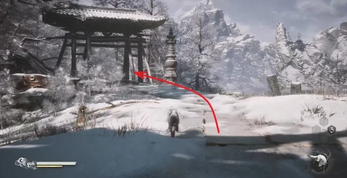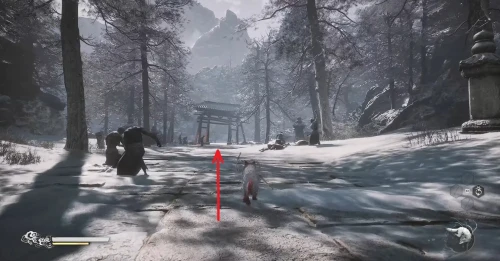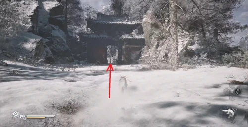 Пройдите через ворота с лисой и сверните по дороге направо. Пройдите вторые ворота и бегите дальше по дороге, пока не достигнете большой красной арки.