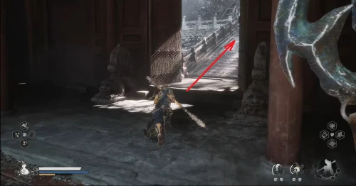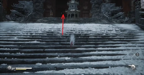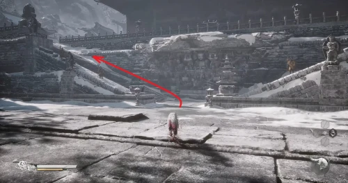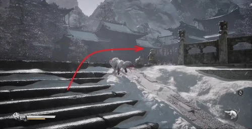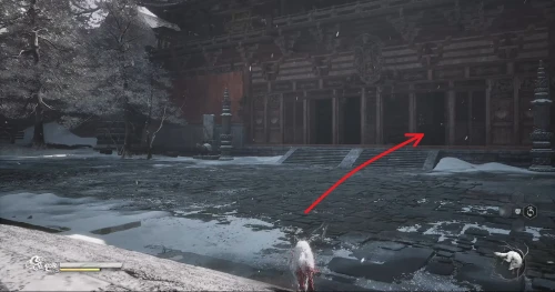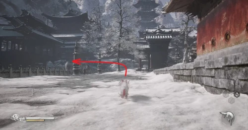 Пробегите через поле с мобами, сверните направо и поднимитесь прямо к храмовому комплексу. Войдите в небольшое красное здание и пробегите через него напрямик наружу. Перед этим зданием также будет находится еще одна точка сохранения.