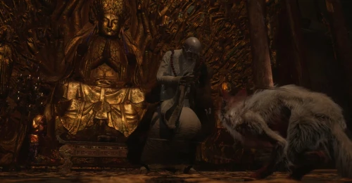 Также лиса расскажет, что узнала о том, что человек, лишивший ее жизни, стал монахом в храме Громовых раскатов и найти его можно в боковом коридоре. Она также попросит взять ее шкуру и принять ее вид когда вы доберетесь до монаха.