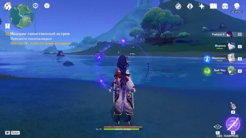 Ваш разговор прервет рев кохолазавров, напавших на ученых из Сумеру, — плывите к другому берегу и победите группу из трех врагов.