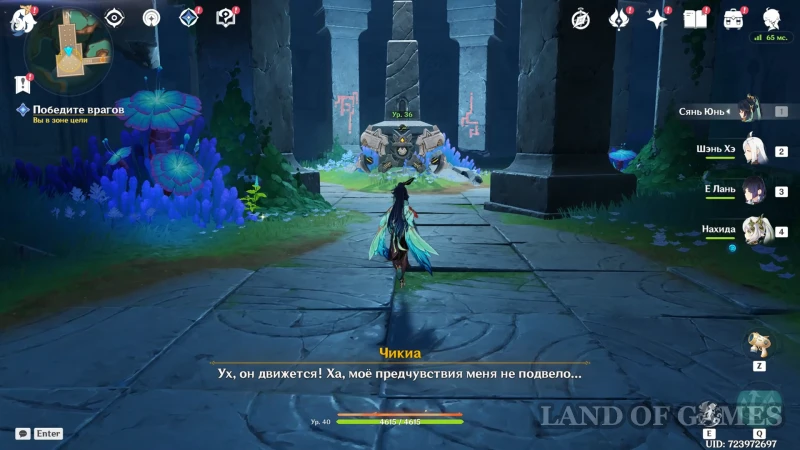 Первым делом пройдите к механизму в северной половине руин и одолейте пробудившегося противника. После исчезновения врага, слева от каменной стелы откроется проход вглубь руин.