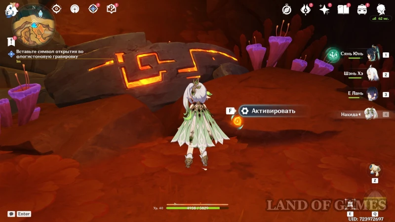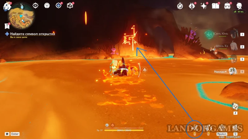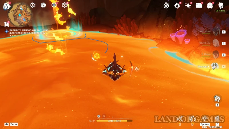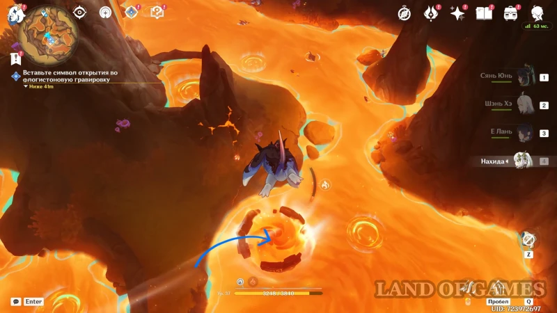 Примените символ к флогистоновой гравировке в центре лавового озера