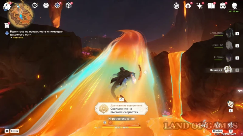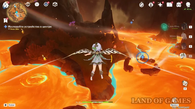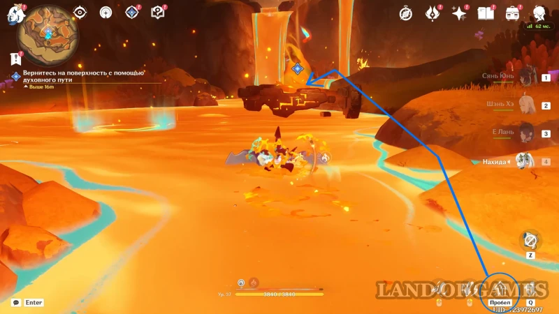 Для удобства перемещения используйте все тех же кохолазавров, а также воздушные кольца на лаве — если заплыть в них и подпрыгнуть, дракона подбросит вверх (удобно для перемещения по области). Помните, что существо может утонуть, если у него кончится запас Ночного духа; не забывайте собирать по пути или активировать постаменты с Пылающими семенами.
