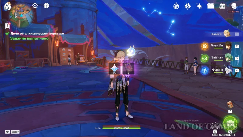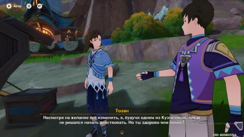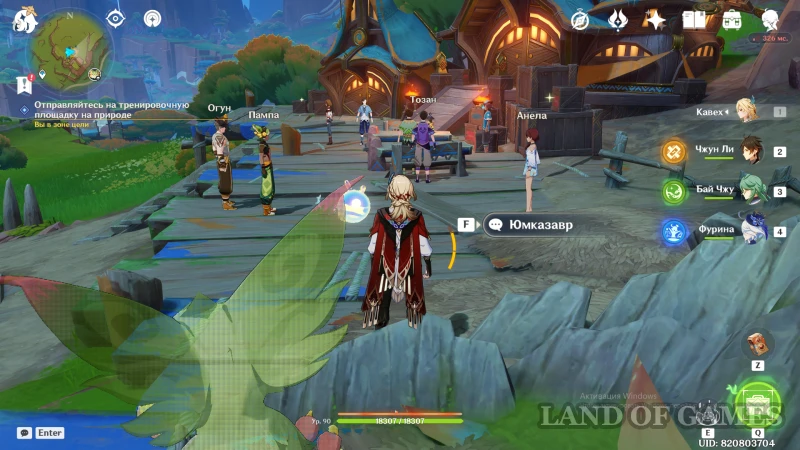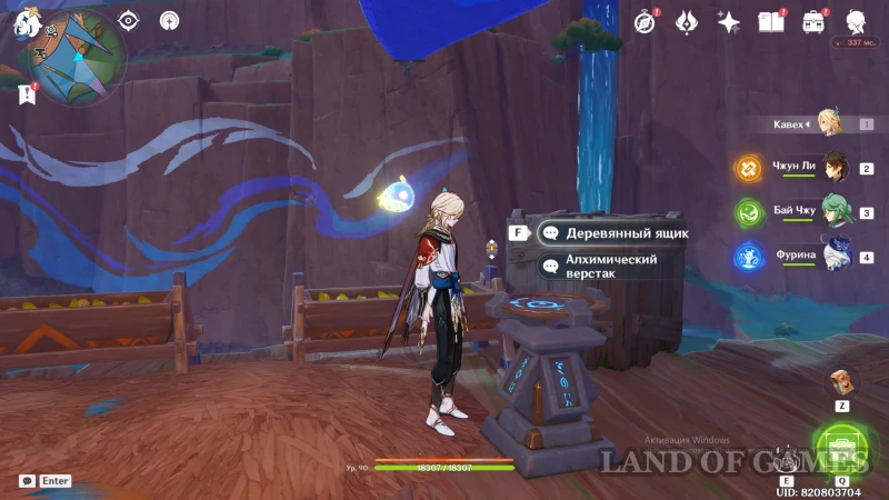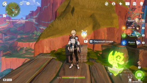 Верстак, который мы обнаружили, оказывается очень странным, и Паймон с Путешественником отказываются пользоваться им. К нам подходит девушка, которая использует верстак, чтобы создать ободряющее зелье, после чего предлагает нам сразиться с ней в Дружеском матче.