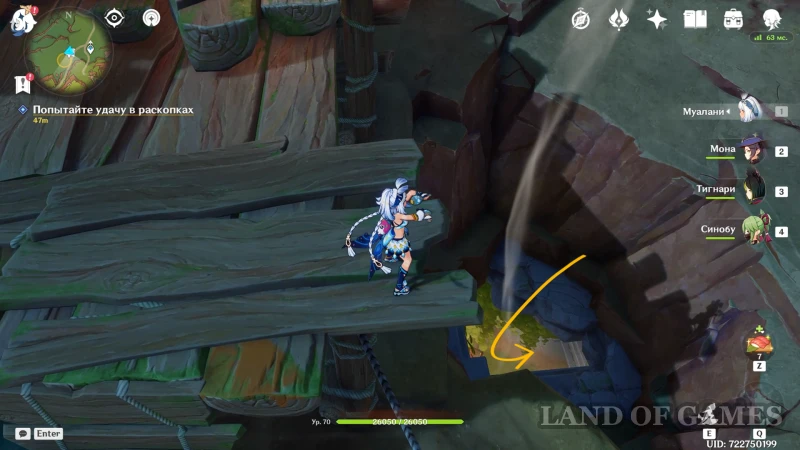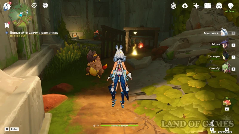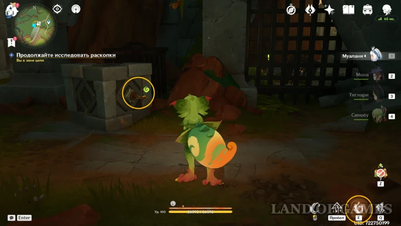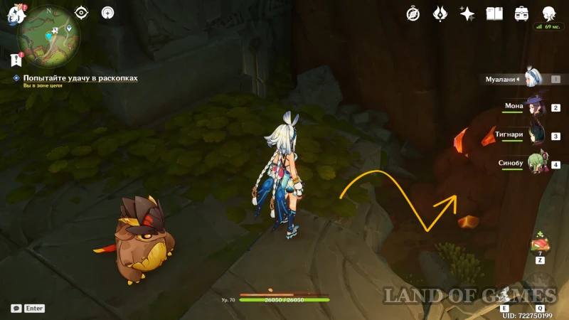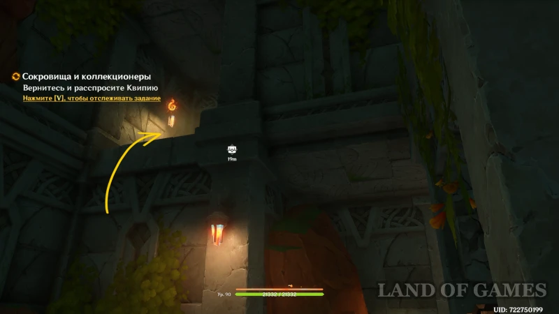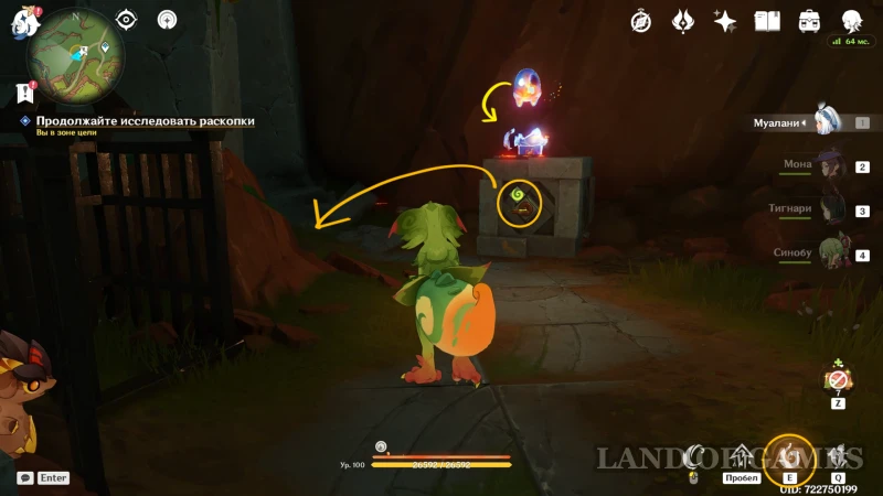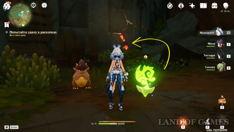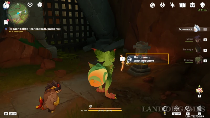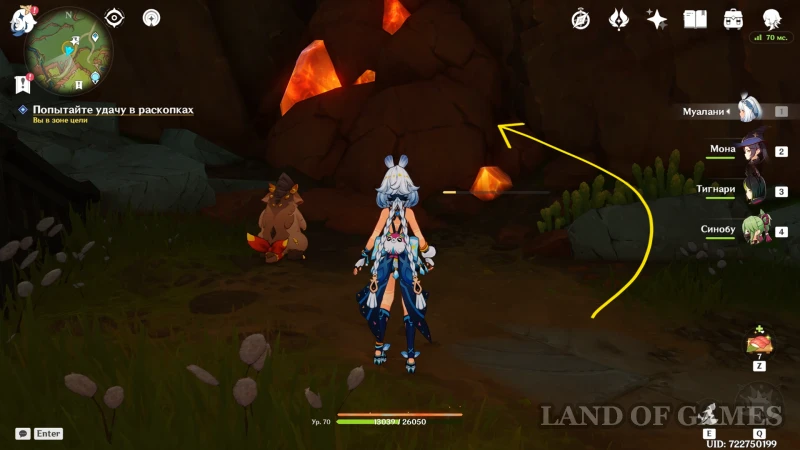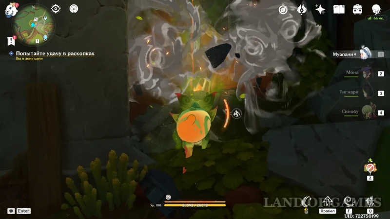 Под каменным завалом будет метка призыва дендро дракона — приняв его облик, вы сможете пробить треснувшую стену с лавовыми кристаллами (прожав ПКМ) и продолжить поиски.