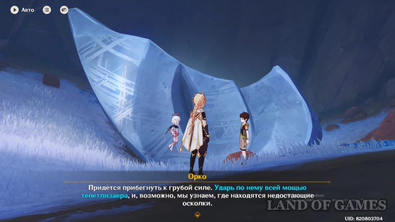 Чтобы узнать, где находятся утерянные осколки, Орко просит нас превратиться в тепетлизавра и ударить по звезде со всей силы. После удара фрагменты, застрявшие в стенах пещеры, откликнутся на зов звезды — механизм чем-то похож на Эхолюсков Фонтейна. Пробудившиеся части небесного тела надо будет собрать по просьбе малыша.
