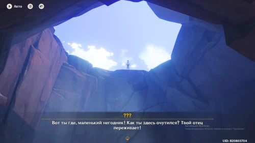 Аккуратно прыгаем на дно расщелины, подходим к мальчику, что автоматически начинает диалог.